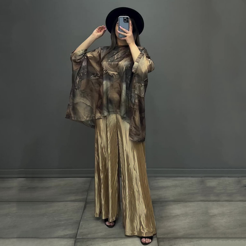 BAT SLEEVE TOP: The top in this set boasts a stylish bat sleeve design, creating a flattering and fashionable silhouette that complements a variety of body types.