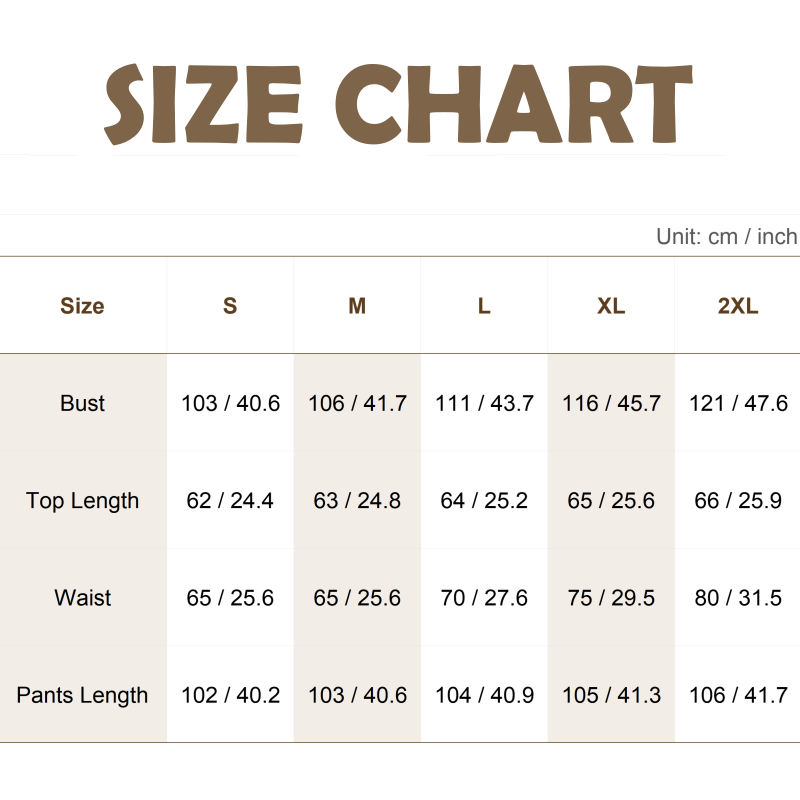 Package Includes: 1*Top + 1*Pants