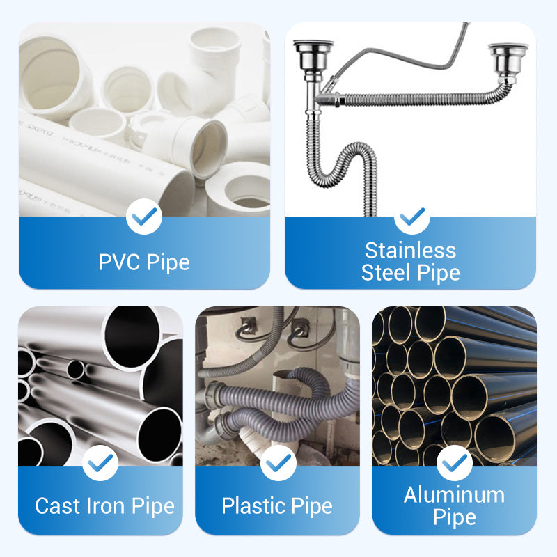SAFE AND EFFECTIVE FOR ALL PIPE TYPES: This powerful dredging agent effectively cleans PVC, ceramic, plastic, PE, cast iron, and stainless steel pipes without causing damage, as it does not contain harsh corrosive chemicals.