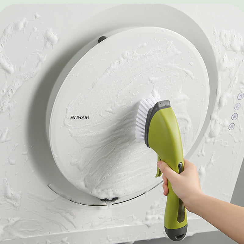 SOAP DISPENSING FUNCTION: Easily add dishwashing liquid to the brush and press to dispense, ensuring a convenient and efficient way to clean pots, pans, and dishes.