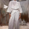 CHIC AND VERSATILE DESIGN - The shirt features a stylish stand collar, button-down closure, and 3/4 length sleeves. The pants have a decorative belt waistband design with button, allowing for a polished or casual look.
