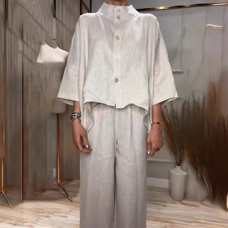 COMFORTABLE FABRIC - This set is crafted from a refined blend of soft, breathable cotton and linen fabrics, providing a lightweight and airy feel perfect for warm weather. The natural fibers ensure all-day comfort and a relaxed, elegant look.